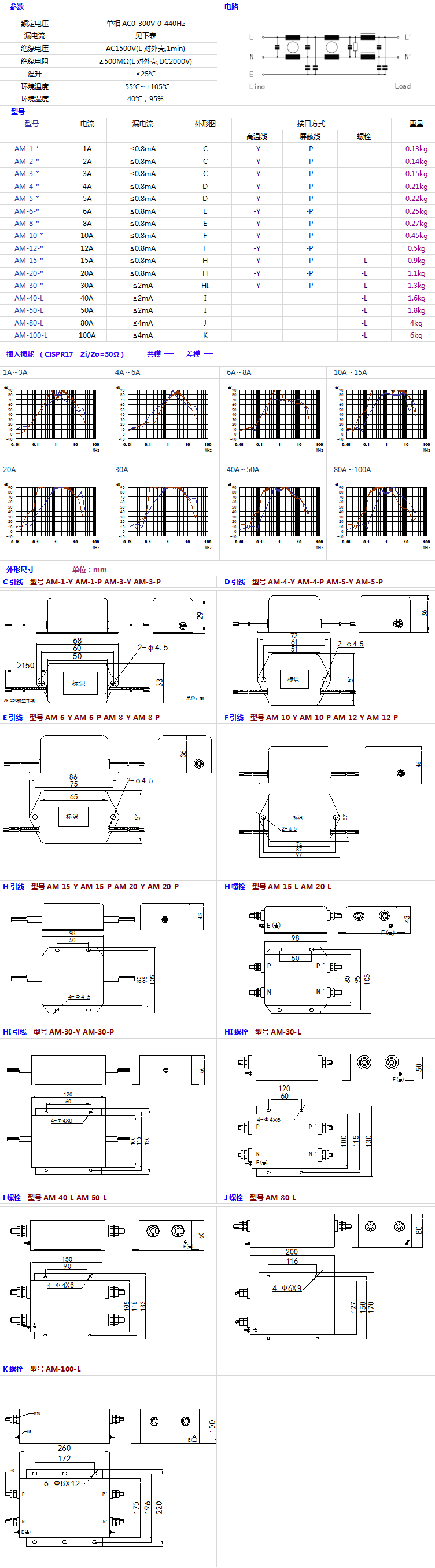 AM 系列 军用单相电源滤波器 AC0-300V (220V/115V)