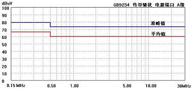 GB9254中对被测试设备分为A级和B级两类,并给出不同的骚扰限值。电源端口传导骚扰限值如下图。