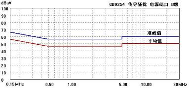图2 GB9254 传导骚扰 电源端口 B级限值